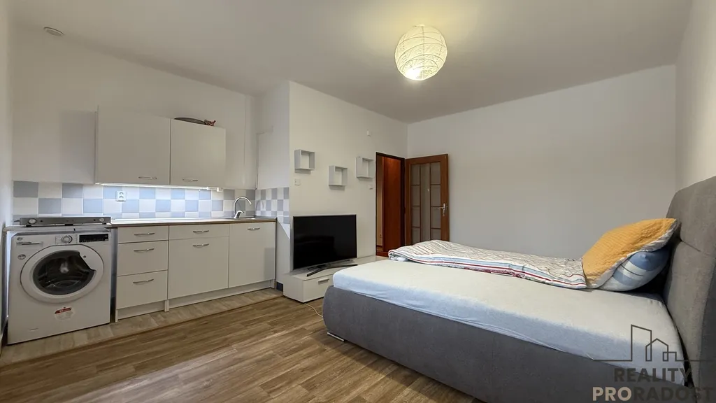 Součástí vybavení je moderní kuchyňská linka s pračkou a s varnou deskou. Byt je světlý, útulný a připravený k okamžitému nastěhování.