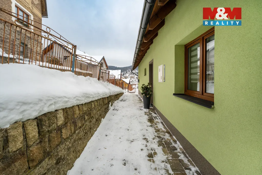 Slunný a prostorný dům 5+kk v Tanvaldu nabízí klid, soukromí a nádherný výhled na lesní hřeben – i přes blízkou vlakovou zastávku uvnitř není hluk vůbec slyšet. Bezbariérové přízemí tvoří ložnice, pokoj, koupelna a otevřený obývací prostor s kuchyní na míru a jídelním koutem, přímo navazující na terasu ideální pro ranní kávu i večerní odpočinek. Podkroví nabízí dva velké pokoje, z nichž jeden má přípravu na kuchyň – ideální pro dvougenerační bydlení nebo samostatný apartmán. Geometricky rozdělená parcela umožňuje vybudovat samostatný vstup, výměnek nebo tiny house pro podnikání, krátkodobé či dlouhodobé ubytování, turistický pronájem, lyže a horské aktivity. Dům prošel rekonstrukcí, je zateplený, vytápěný tepelným čerpadlem s akumulační nádrží, možnost krbu, zahrada s pergolou a dílnou nabízí prostor pro záliby i relax. Parkování pro 3+ vozy, cesta s omezeným vjezdem pro rezidenty, uvnitř naprosté ticho. Přijďte a přesvědčte se, že toto místo je ideální kombinací bydlení i podnikání!