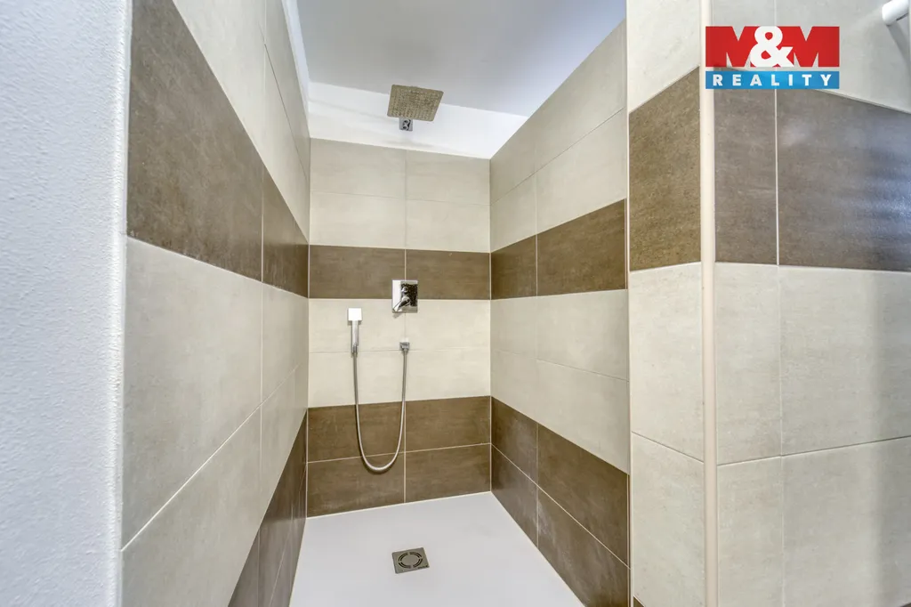 Ve druhém poschodí se nachází tři ložnice, z nichž jedna má dokonce vlastní šatnu. Najdeme zde také prostornou koupelnu se zděným sprchovým koutem.