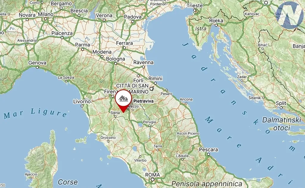 Obec Pietraviva je místo, kde se sousedé vzájemně znají a život zde plyne pomaleji. Obec se nachází v údolí Valdambra, které je jedním z nejautentičtějších koutů Toskánska, stále ušetřeného od masového turismu.