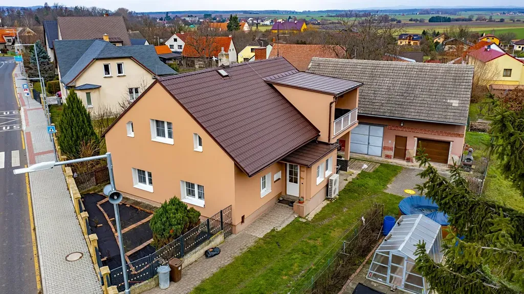 Celková výměra pozemků činí 1 029 m2. K domu náleží také prostorná stodola o zastavěné ploše 115 m2, která aktuálně slouží pro parkování vozidel, ale nabízí široké možnosti využití: od dílny přes skladovací prostory až po zázemí pro podnikání či volnočasové aktivity.
