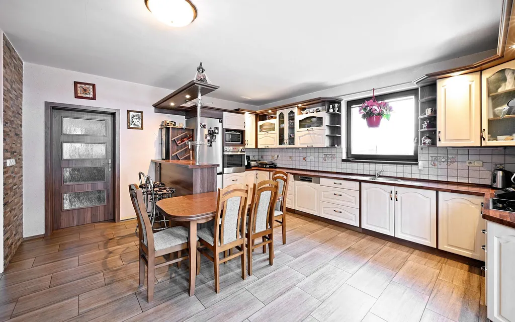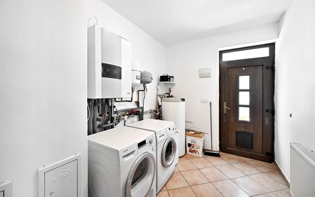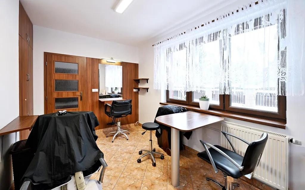 Součástí přízemí je samostatný komerční prostor s vlastní toaletou, ideální pro kancelář, studio, ordinaci, showroom či jiné podnikání, které vyžaduje oddělení od soukromého bydlení. Tento prvek činí dům výjimečným a výrazně rozšiřuje možnosti jeho využití.
