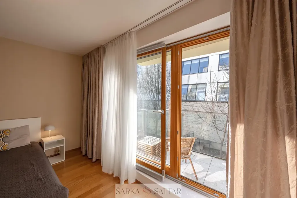 Byt je situovaný do klidného vnitrobloku, kde je v rámci domu přístupná zahrada na posezení.