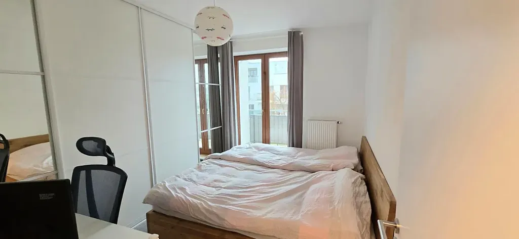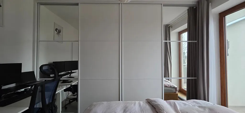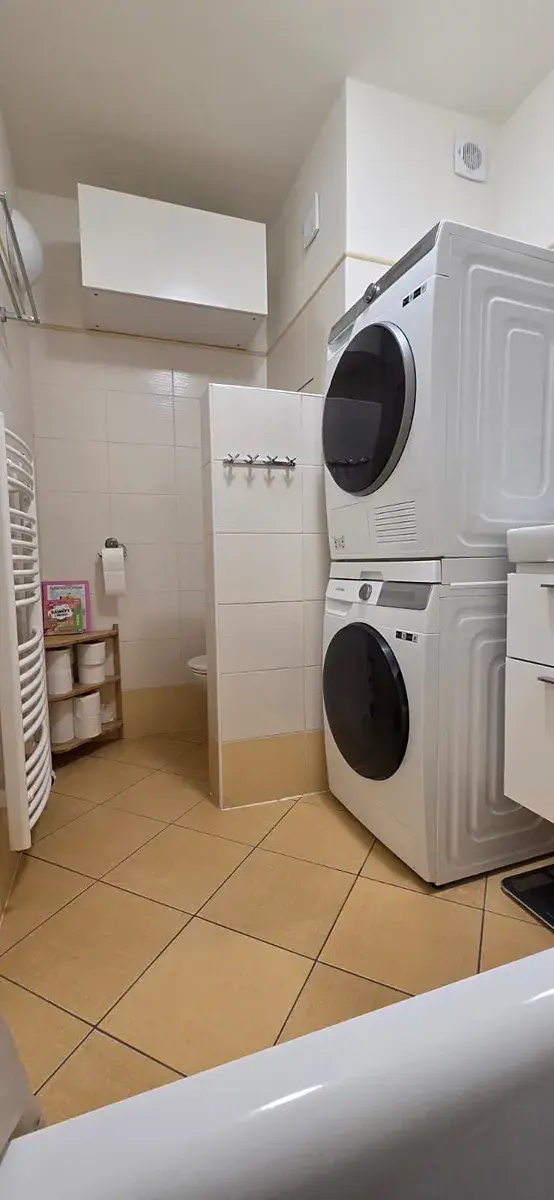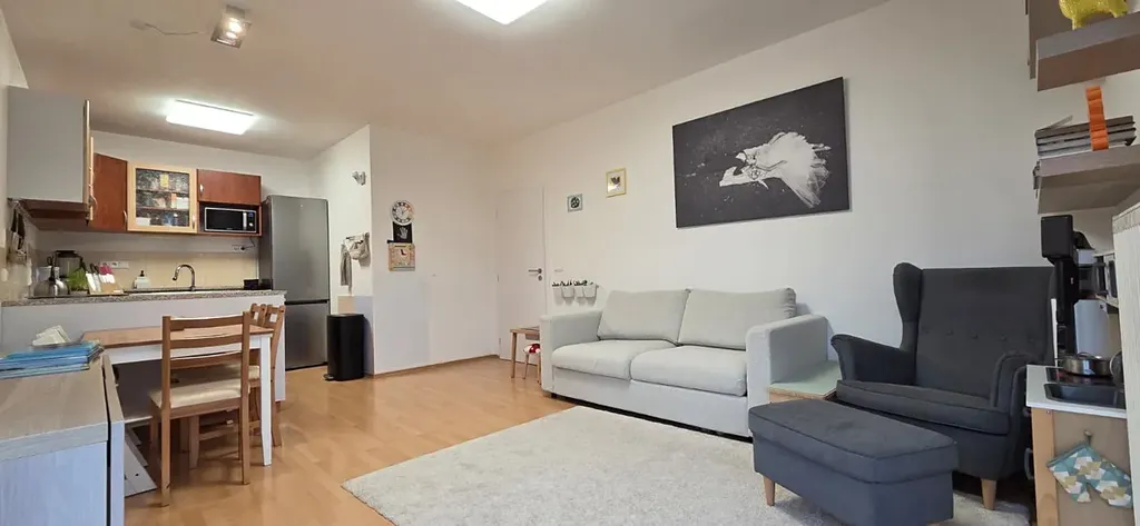 Ložnice je prakticky řešena, nabízí vestavěnou skříň i místo pro pracovní stůl vhodné pro home office a má přímý vstup na balkon. Koupelna s vanou a toaletou je řešena v jednom prostoru. Obývací pokoj s kuchyňským koutem tvoří hlavní obytnou část bytu a velká francouzská okna zajišťují dostatek denního světla.