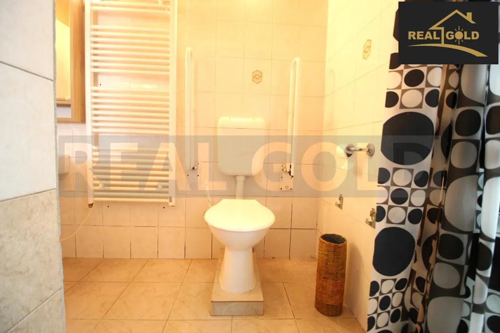• 1. NP: garáž, prostorná krytá veranda s bezbariérovým nájezdem, vstupní chodba s dřevěným schodištěm, velký obývací pokoj s jídelnou a krbem, který navozuje útulnou atmosféru i v zimních dnech, kuchyň s moderní linkou se spotřebiči, barovým pultem, koupelna se sprchovým koutem, se dvěma umyvadly a toaletou, ložnice s šatnou, dětský pokoj, samostatné WC, komora/spíž, sklep a vstup do dvora.
