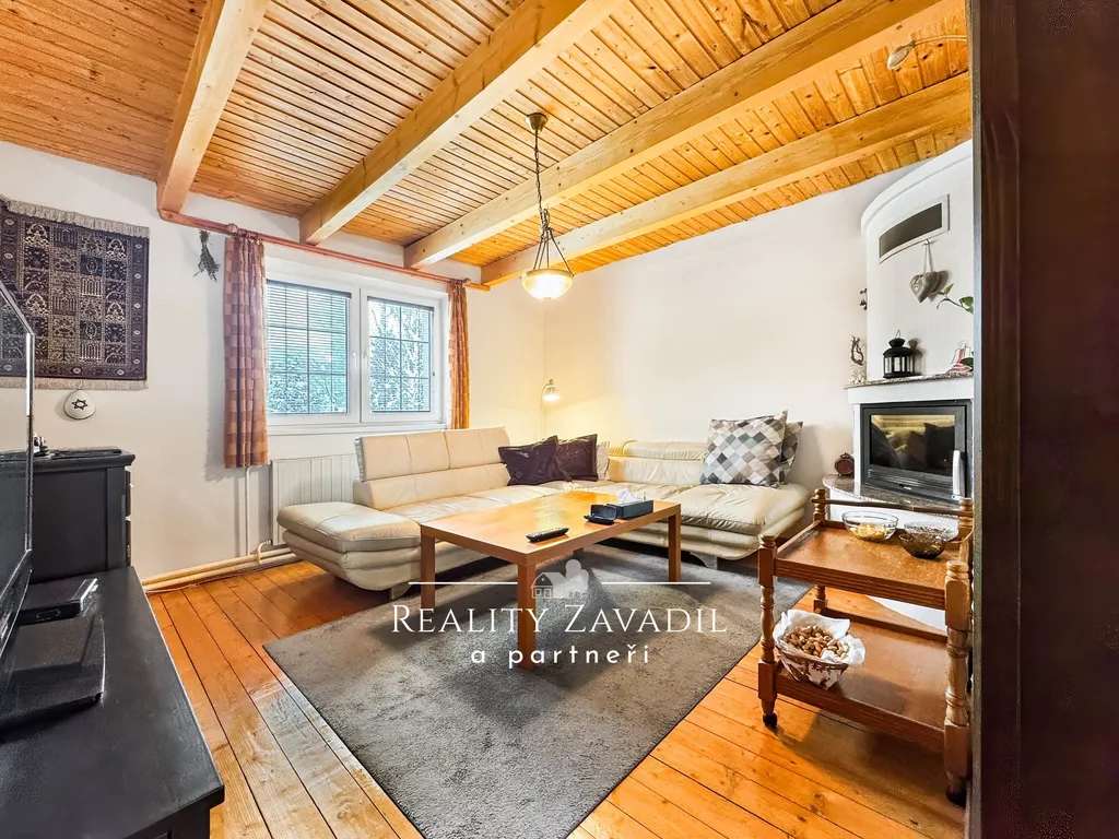 • velký obývací pokoj s krbem