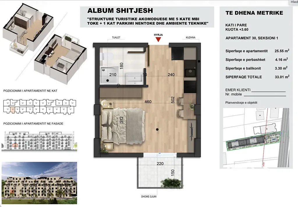 Nabízíme vám 1+kk, o ploše 33.1 m2, v atraktivní pobřežní oblasti Golemu, jen 250m od moře, kde vzniká moderní rezidenční komplex navržený pro ty, kteří hledají kvalitní bydlení v příjemném prostředí s výbornou dostupností i vysokým investičním potenciálem. Architektura projektu je založena na čistých liniích, nadčasové eleganci a harmonickém propojení s okolní zelení. Součástí jsou také vizualizace interiérů, díky nimž si lze snadno představit atmosféru a styl budoucího domova.