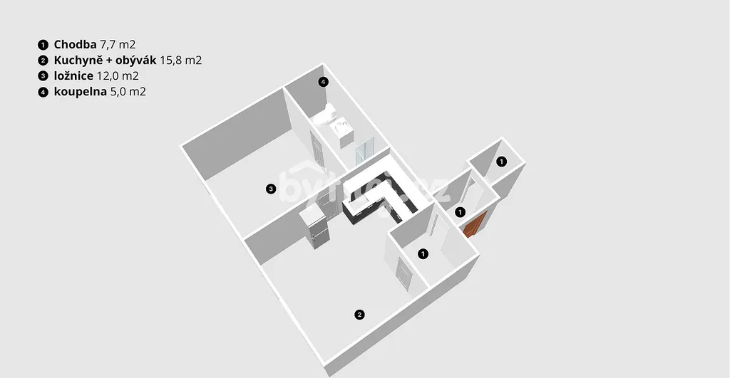 Ve výhradním zastoupení majitele nabízíme k podnájmu byt o dispozici 2+kk a celkové výměře obytné plochy 40,5 m².