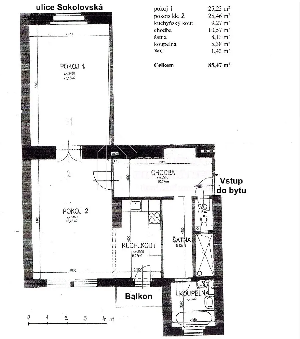 Ke dlouhodobému pronájmu je Vám k dispozici tento mimořádně prostorný byt 2+kk o ploše 85 m² + balkon 2 m², situovaný v atraktivní lokalitě Praha 8 – Karlín, ulice Sokolovská. Stanice metra Florenc (linky B i C) je vzdálena pouhé 4 minuty chůze.