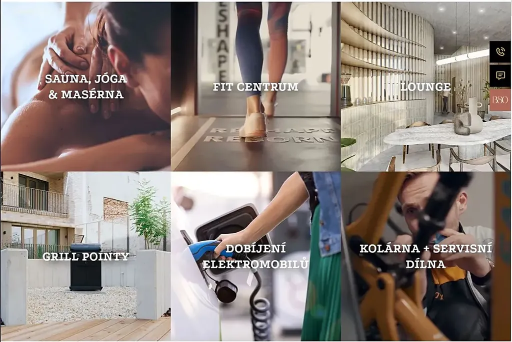 Rezidence nabízí reprezentativní společné prostory – recepci, lobby s kavárnou, kde můžete pracovat nebo se potkávat s přeteli u dobré kávy. K dispozici je také sauna s relaxační zónou, fitness, kolárna, grill pointy v semiuzavřeném arálu s příjemnou zelení. V bezprostředním okolí najdete obchody, restaurace, kavárny i zastávky MHD, díky nimž se snadno dostanete do centra i dalších částí Brna.