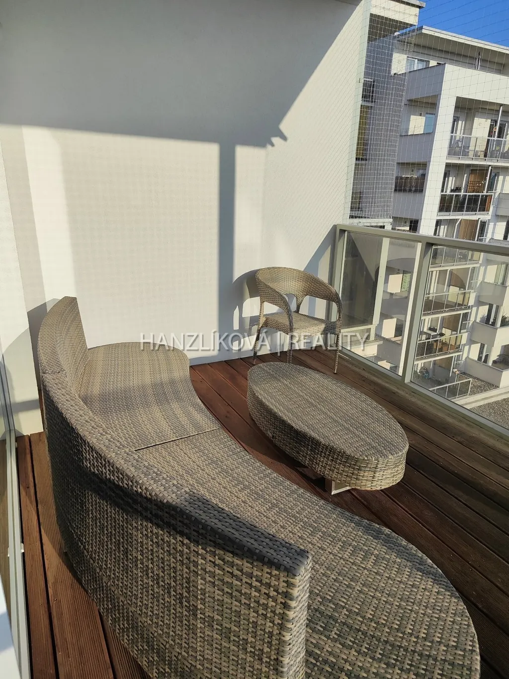 Nabízíme k pronájmu bytovou jednotku číslo B.5.02. Jedná se o byt 2+kk o výměře 52,55 m2 + terasa 9,91 m2, který se nachází v 6.NP rezidenčního komplexu DLOUHÁ LOUKA. Byt se skládá z: chodby, se šatnou, koupelny s toaletou, složnice a prostorného obývacího pokoje s kuchyňským koutem, ze kterého je přístup na terasu. Byt je orientovaný na východ s výhledem na řeku a na město. Byt je kompletně vybaven viz fotografie, kuchyně vč. spotřebičů (lednice, trouba, varná deska, digestoř).
