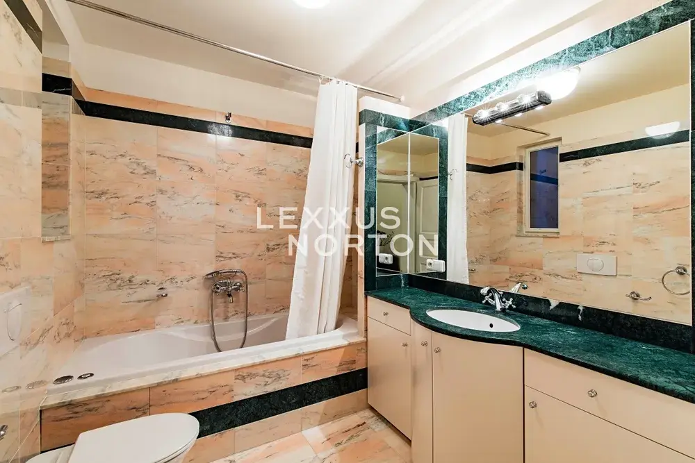 Tento světlý zařízený byt k pronájmu dispozičně nabízí vstupní chodbu, prostorný obývací pokoj se vstupem na balkon s výhledem do parku, plně vybavenou kuchyň, 2 ložnice, samostatnou koupelnu a prádelnu. Hlavní ložnice nabízí balkon a koupelnu. Druhý samostatný balkon s výhledem do vnitrobloku. Možnost pronájmu parkovacího stání za poplatek.