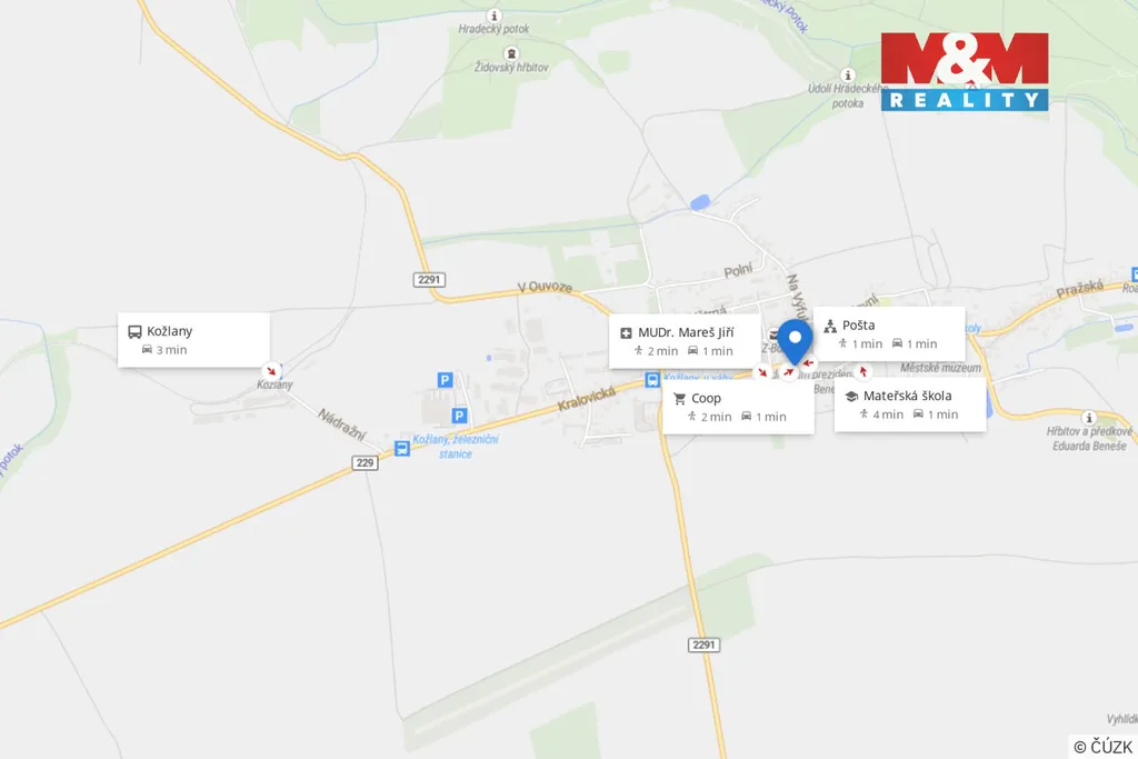 Město Kožlany nabízí kompletní občanskou vybavenost – škola, školka, obchody, i dobré dopravní spojení.