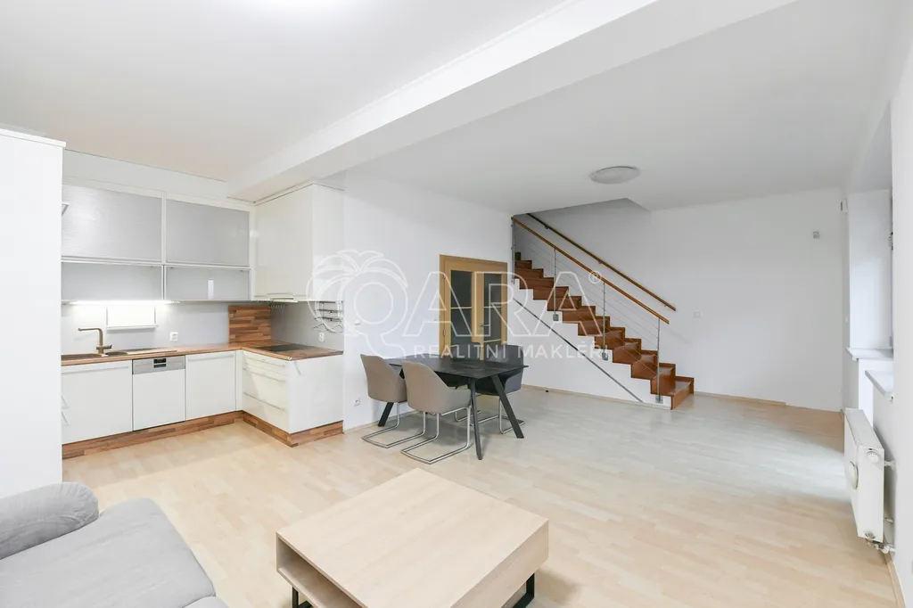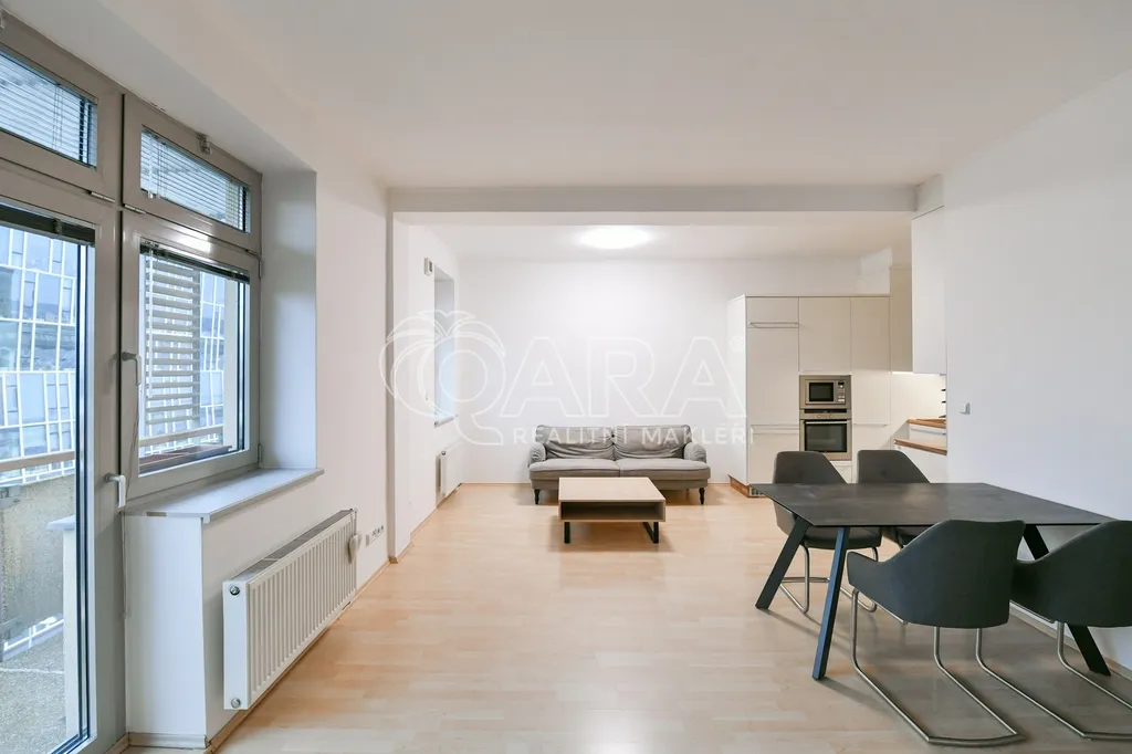 Ve výhradním zastoupení majitele nabízíme k pronájmu mezonetový byt o dispozici 4+kk s dvěma balkony a garážovým stáním. Byt se nachází v posledních dvou patrech (5. a 6.patro) bytového domu. Prostorné garážové stání lze pronajmout za 2.000,-Kč/měsíčně. Byt se nachází kousek od metra B – Českomoravská.