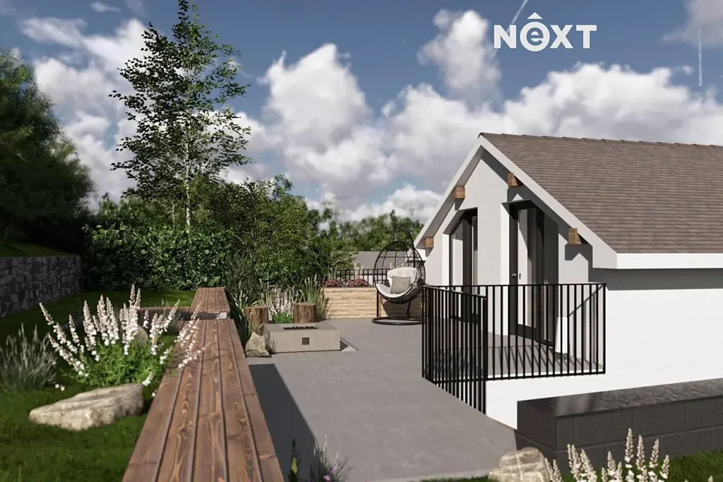 Už při vstupu vás nadchne, jak promyšleně je dům navržen. Disponuje hned třemi prostornými terasami, které nabízejí perfektní místo pro relaxaci, posezení nebo výhled do zeleně. Z největší terasy je navíc přímý vstup na privátní zahradu, která poskytuje dostatek prostoru pro rodinné aktivity, děti, zahradní posezení nebo pěstování.