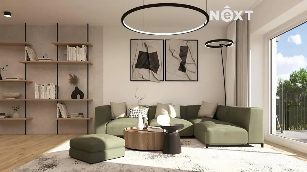 Po vstupu do hlavního bytu vás uvítá předsíň 3,4m2, ze které vede vstup do šatny, na samostatné WC a do prostorného obývacího pokoje s kuchyní o výměře 53 m². Součástí je i praktická spíž a vstup na druhou, 19metrovou terasu. Na tomto podlaží se nachází také sklep 12m2, který slouží jako perfektní úložný prostor.