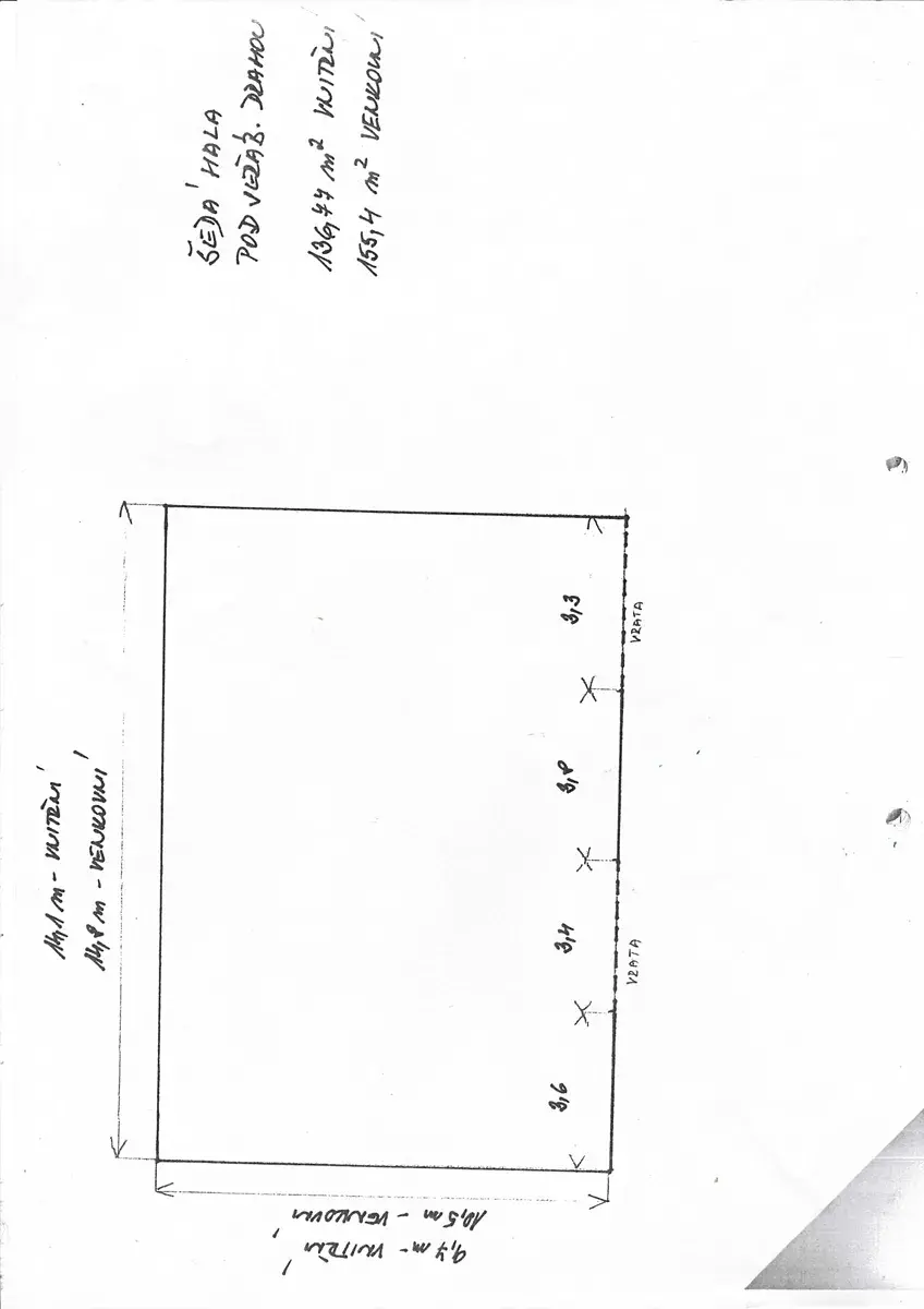 Hala má zastavěnou plochu 155,4 m2 a vnitřní užitnou plochu 136,77 m2.