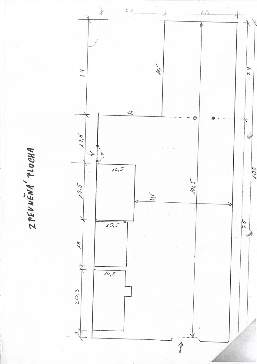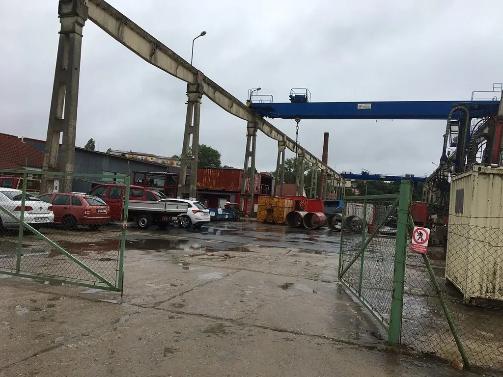 Vedle plochy je kancelářský dům s užitnou plochou 180 m2. Možnost pronájmu plechové haly pod jeřábem.