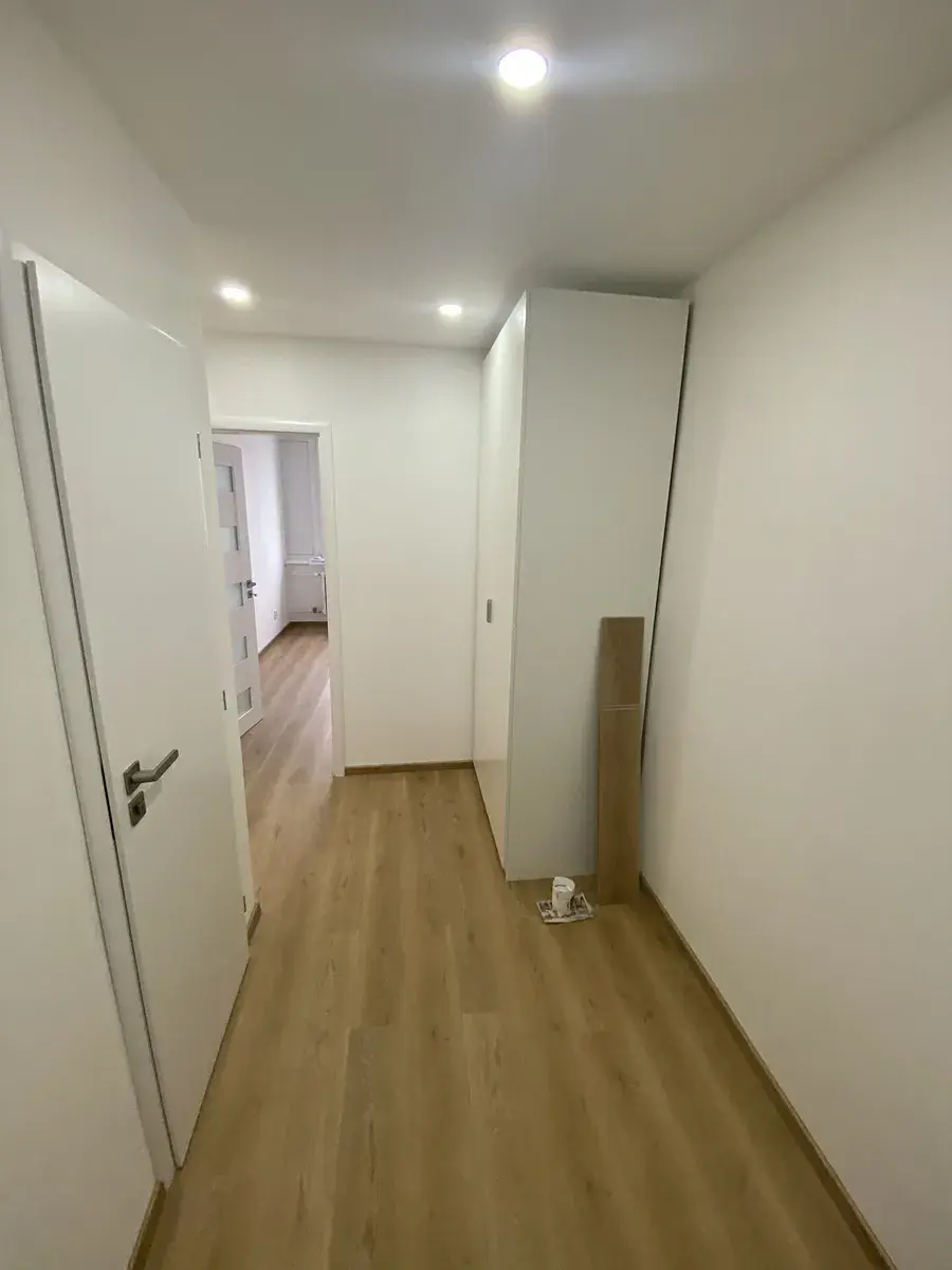 Vstup do bytu je přes chodbu, kde jsou další dveře. Tím je zajištěno bezpečí a soukromí.