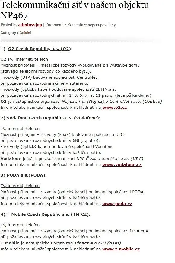 Parking před domem. Internet + společná anténa v domě.