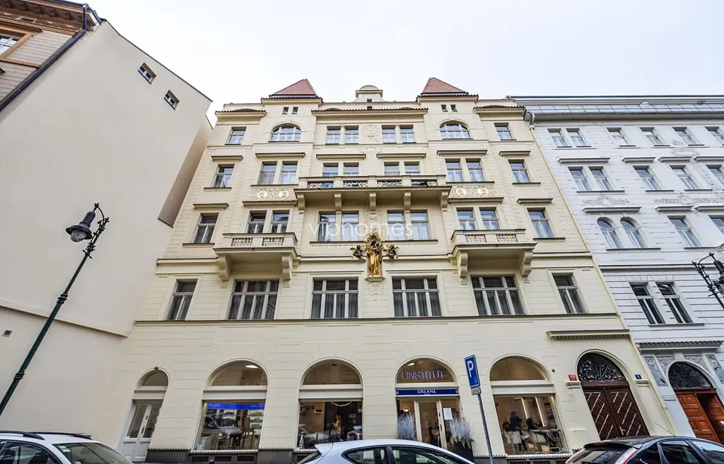 Stylově zařízený podkrovní mezonet (129 m2) s terasou (6m2) situovaný v 5.patře kompletně zrekonstruované historické budovy s velkým důrazem na zachování historických architektonických prvků, situovaný v klidné ulici nedaleko Náměstí republiky. Vynikající dostupnost městkou hromadnou dopravou, tramvajemi a stanicí metra. Zároveň jste rychle napojeni na systém vnitřního dopravního okruhu Prahy a svižně se dostanete na všechny hlavní trasy. V okolí je spousta kaváren, restaurací, obchodů, pro větší nákupy je nejblíže nákupní centrum Kotva a Palladium.