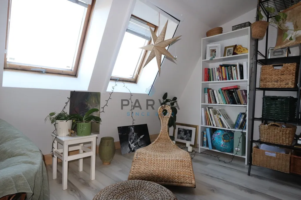 Po dřevěných schodech vystoupíte do útulné místnosti ( 20,25m2)vhodné jako ložnice a zároveň úložný prostor / nová šatní skříň bude v případě zájmu ponechána k dispozici/