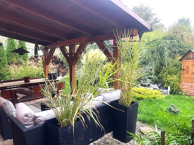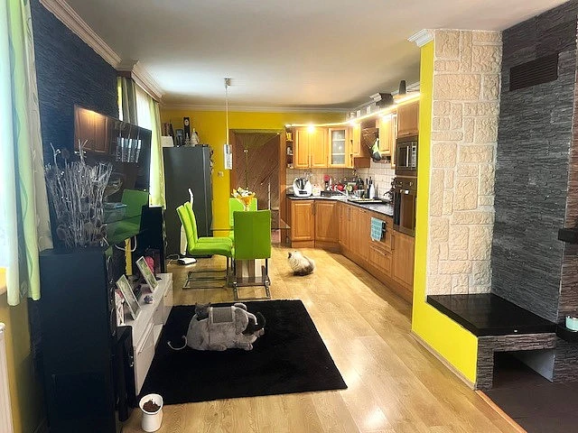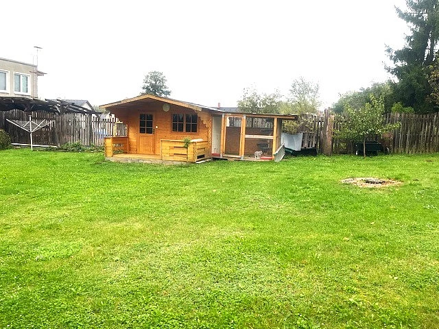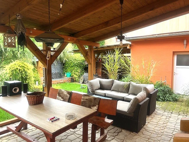 Dům je dispozičně řešený jako 5+kk a jeho velkým bonusem je prostorné a kryté posezení za domem se samostatnou kuchyní. Tento prostor poskytuje naprosté soukromí a navazuje na rozlehlou zahradu s ovocnými stromy, na které se nachází dřevěný domek. Zahrada je ideálním místem pro relaxaci, aktivity s rodinou nebo zahradničení.