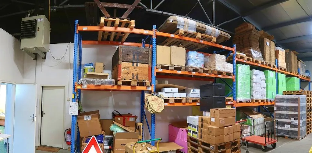 Hala je skladově-výrobní s plynovým topením a moderním osvětlením, vč. osvícení ramp (2x). Příjezd možný pro veškerou osobní i nákladní dopravu vč. TIR. Možnost parkování osobních automobilů na vlastním, oploceném pozemku až 7 míst. Jde o přízemní zateplenou halu z roku 1998. V hale regály až o kapacitě 700 EuPalet. Přístup zajišťují sekční vrata 3 x 3 m s vyústěním na kryté nákladové rampy pro Avii a TIR. Podlahy betonové s bezprašnou povrchovou úpravou a nosností 5 000 kg/m2. Využitelná výška haly činí 5 m, Osvětlení el. zářivkové a pomocí střešních světlíků. Vytápění zajišťují plynové zářiče s regulací - viz foto.
