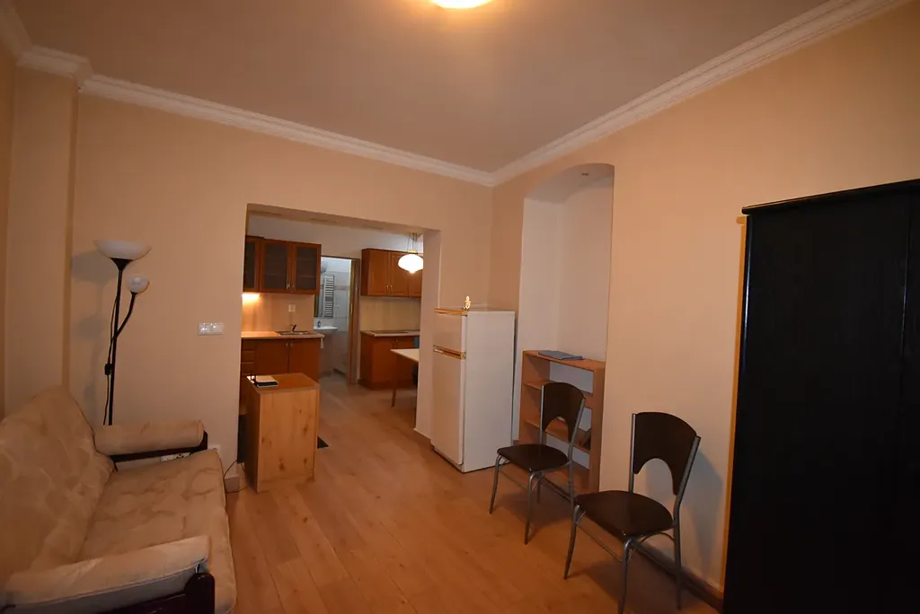 Dispozice bytu nabízí samostatný pokoj, kuchyni, koupelnu se sprchovým koutem a WC. Byt se pronajímá včetně vybavení. Vhodné pro jednotlivce nebo pár.