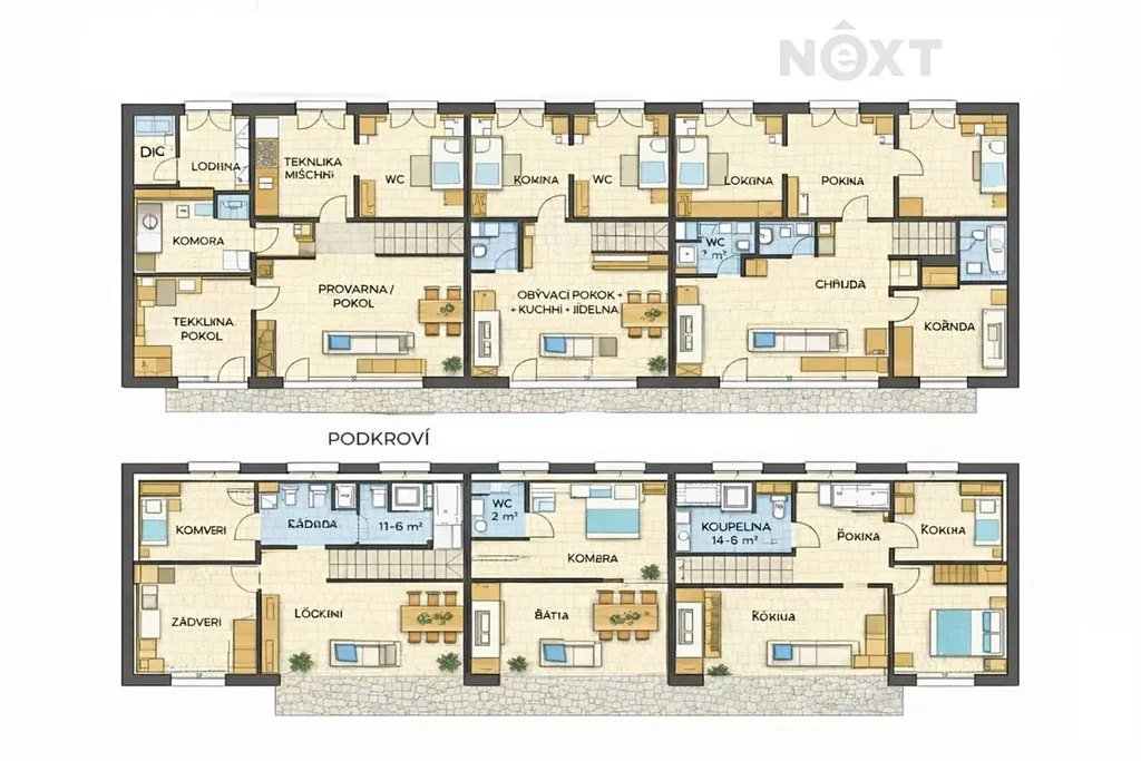 Výjimečnou přidanou hodnotou jsou rozsáhlé půdní prostory, které nabízejí možnost vybudování až 8 pokojů a bytu správce, a tím rozšíření provozu o penzion či ubytovací zařízení. Alternativně lze objekt rozdělit na tři řadové, dvoupodlažní domy, přičemž veškeré úpravy by probíhaly pouze v interiéru, bez zásahu do obvodového pláště stavby.