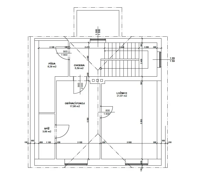- Pozemek: Prostorný slunný pozemek o rozloze 821 m².