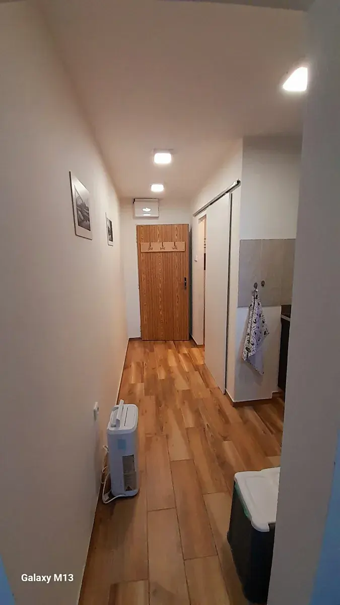 Vytápění bytu je lokální prostřednictvím elektrického přímotopu. Dispozice bytu: chodba, sociální zázemí (koupelna se sprchovým koutem, umyvadlem a WC), kuchyně a ložnice.