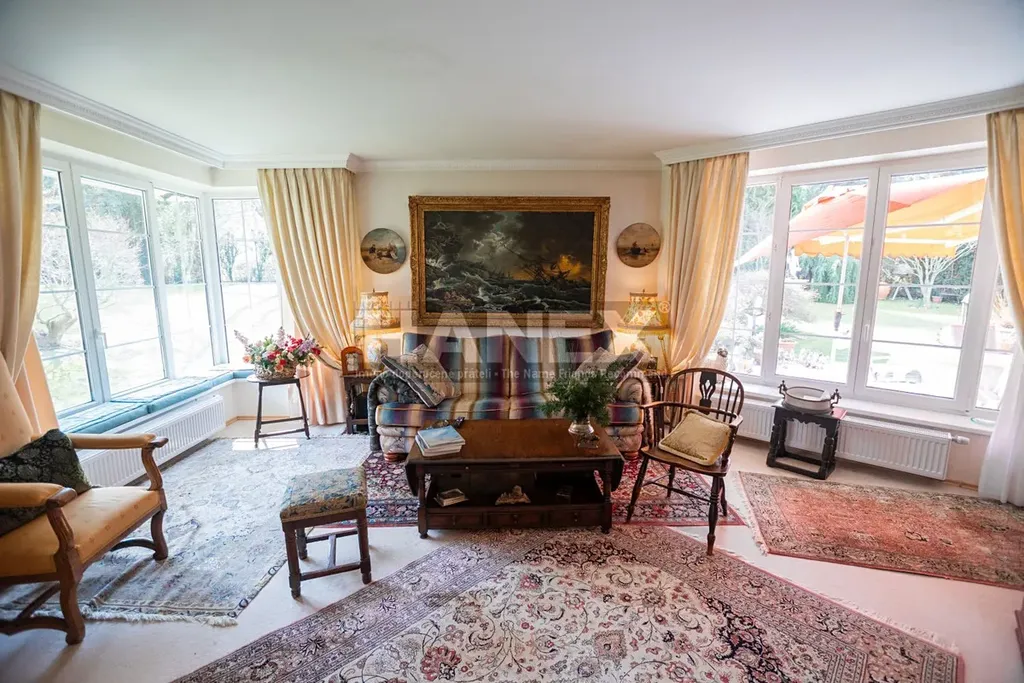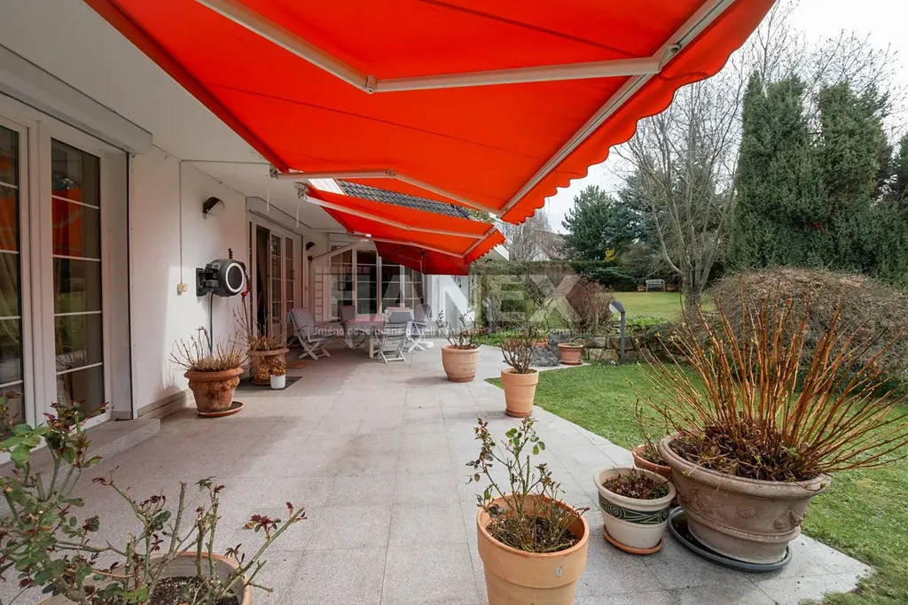 Dům s užitnou plochou 365 m2 se rozprostírá na lichoběžníkovém pozemku o velikosti 1.259 m2, z toho zastavěná plocha činí 201 m2 a zahrada 1.058 m2.
