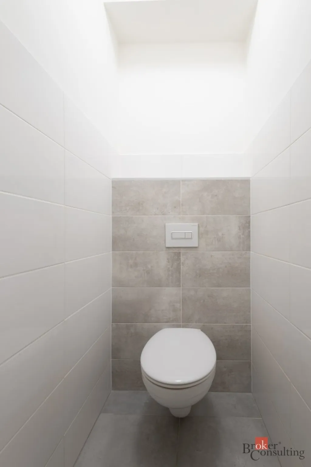 Moderní vybavení: Kuchyňská linka je osazena spotřebiči (indukce, el. trouba, myčka, digestoř). Samostatné WC a moderní koupelna se sprchovým koutem jsou samozřejmostí.