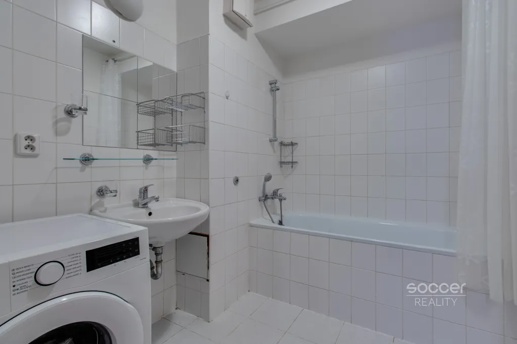 Dispozice bytu je řešena velmi prakticky a nabízí nadstandardní prostor v rámci kategorie 2+kk. Po vstupu do bytu se nachází chodba se samostatnou toaletou. Z chodby se plynule dostanete do prostorné obytné části s kuchyňským koutem, která tvoří přirozené centrum bytu. Z obývacího pokoje je vstup do ložnice, ze které se samostatně vchází do šatny a koupelny s vanou.