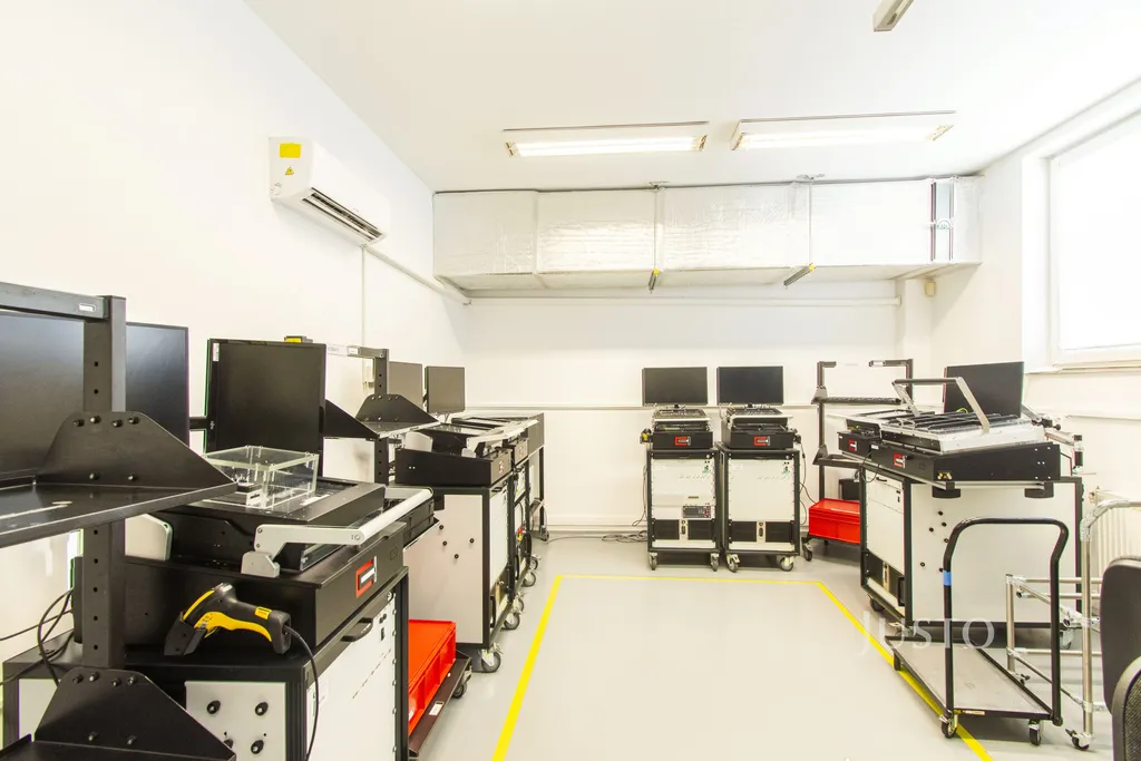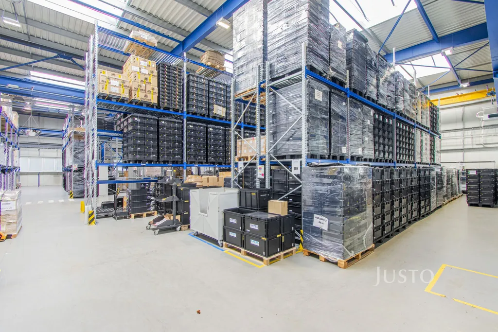 Hala je vybavena dvěmi jeřáby (první s nosností 5 tun, druhý s nosností 3,2 tuny). Regály, které jsou nyní v hale mohou být k dispozici i pro nového majitele.