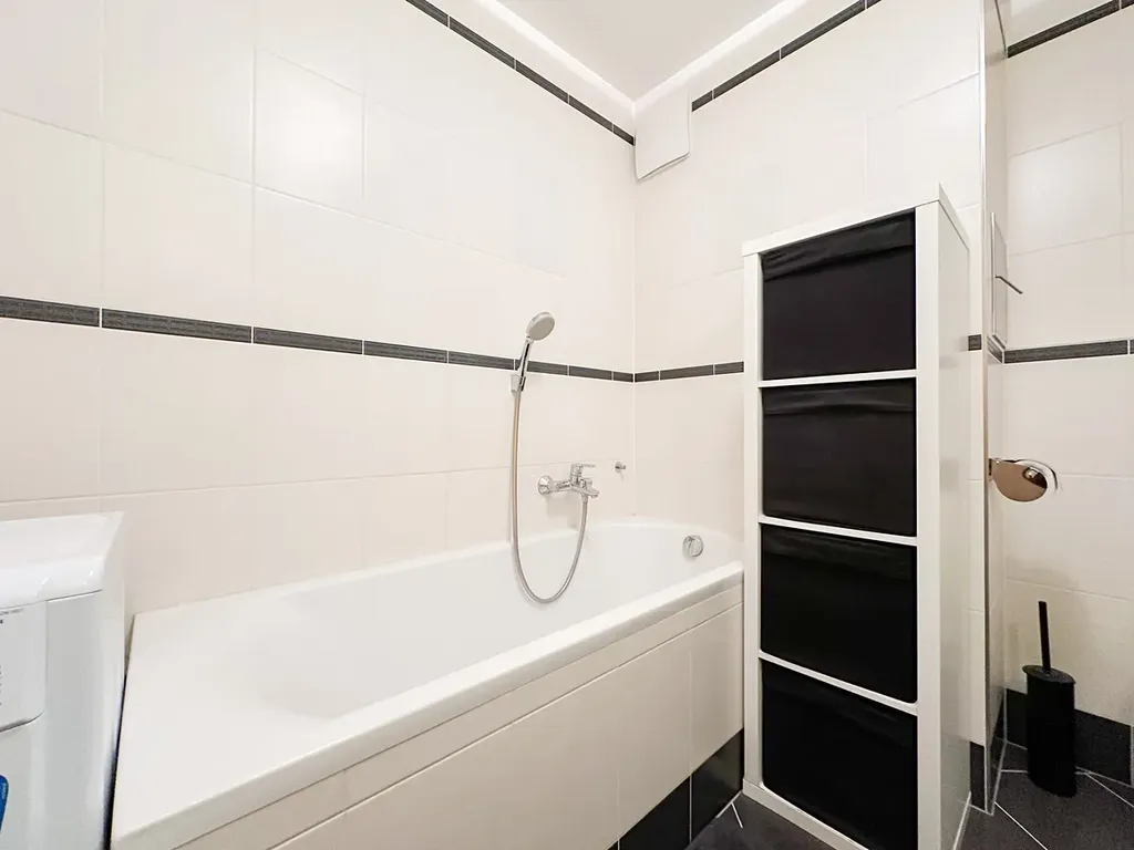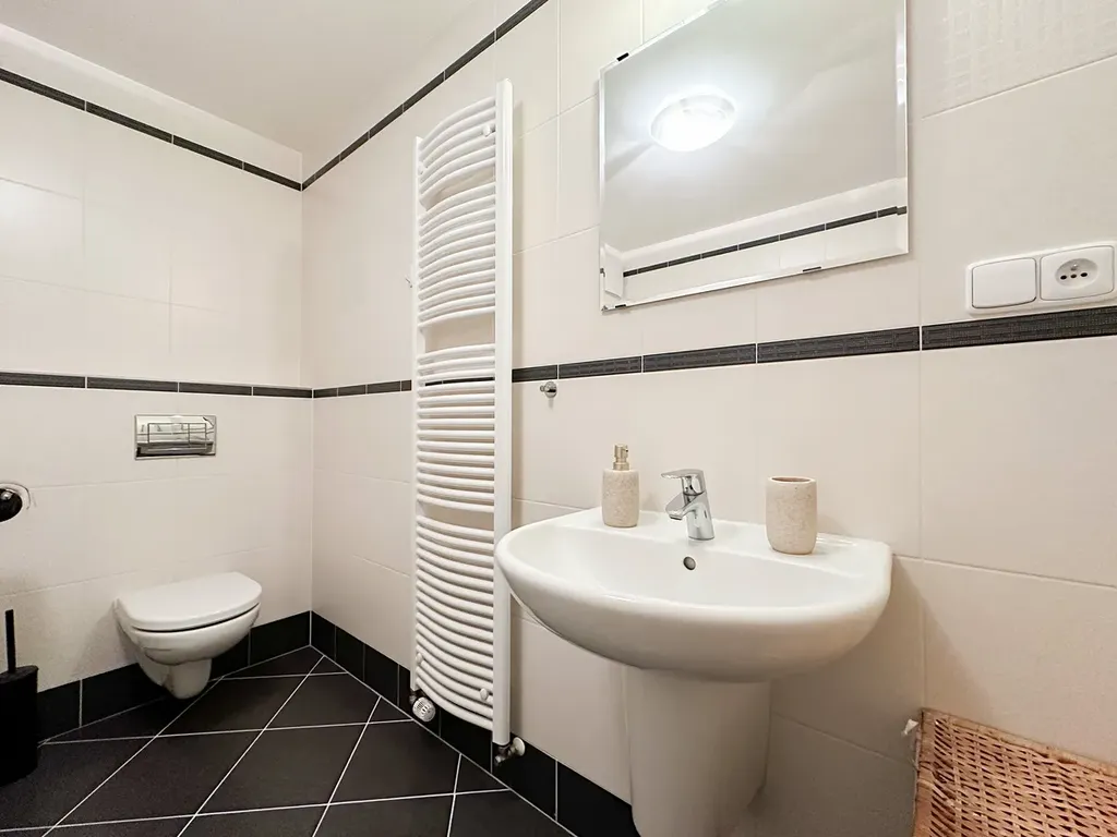 V bytě je dostatek úložného prostoru díky vestavěným skříním. Interiér je laděn do světlých, neutrálních tónů a působí velmi vzdušně a moderně.
