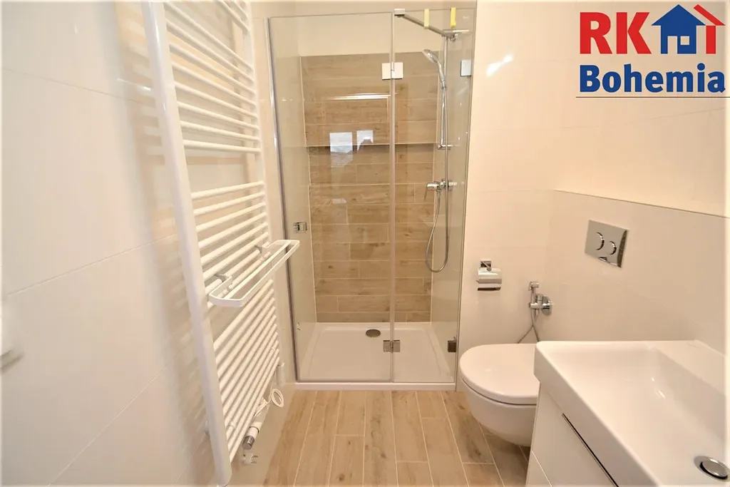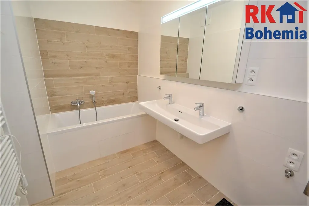 V chodbě samostatná toaleta, hlavní koupelna s vanou a připojením na pračku. U ložnice druhá koupelna se sprchovým koutem a druhou toaletou.