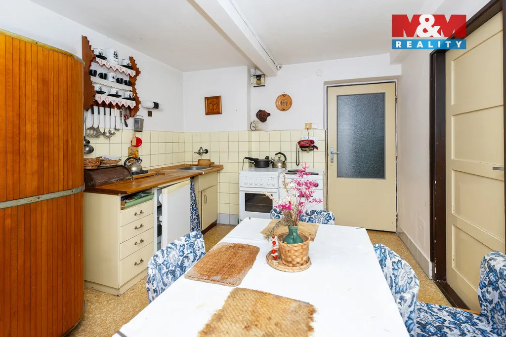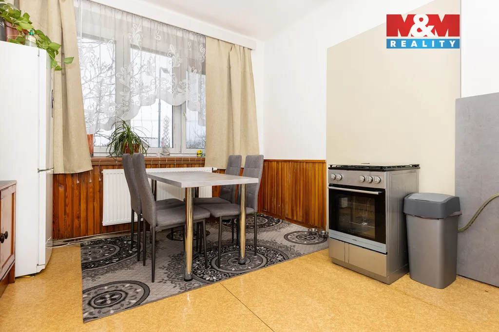 2. NP: samostatná toaleta, koupelna, kuchyň s jídelnou, obývací pokoj a dvě ložnice. Byt je v současné době pronajatý. Součástí nemovitosti je také samostatný pokoj o výměře 16 m², který je zatížen věcným břemenem užívání (právní vada). Vstup do tohoto pokoje je zajištěn z vedlejšího domu. Vytápění domu je řešeno plynovým kotlem. Platba v hotovosti. Volné dle dohody.