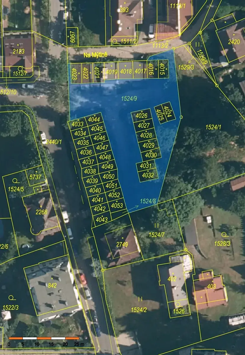 Příjezd ke garáži je zajištěn přes pozemek s věcným břemenem jízdy, součástí je podíl 1/29 na parcele č. 1524/9, k.ú. Jablonec nad Nisou. Samotná garáž se nachází na parcele č. 4024, k.ú. Jablonec nad Nisou.