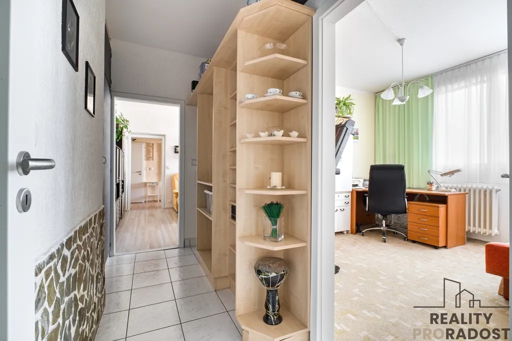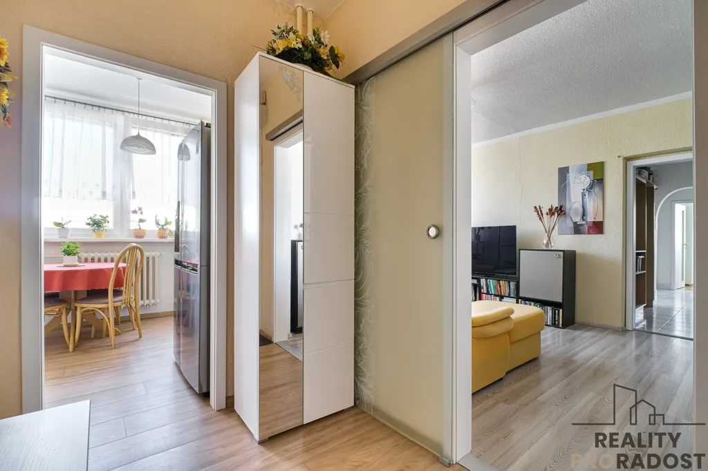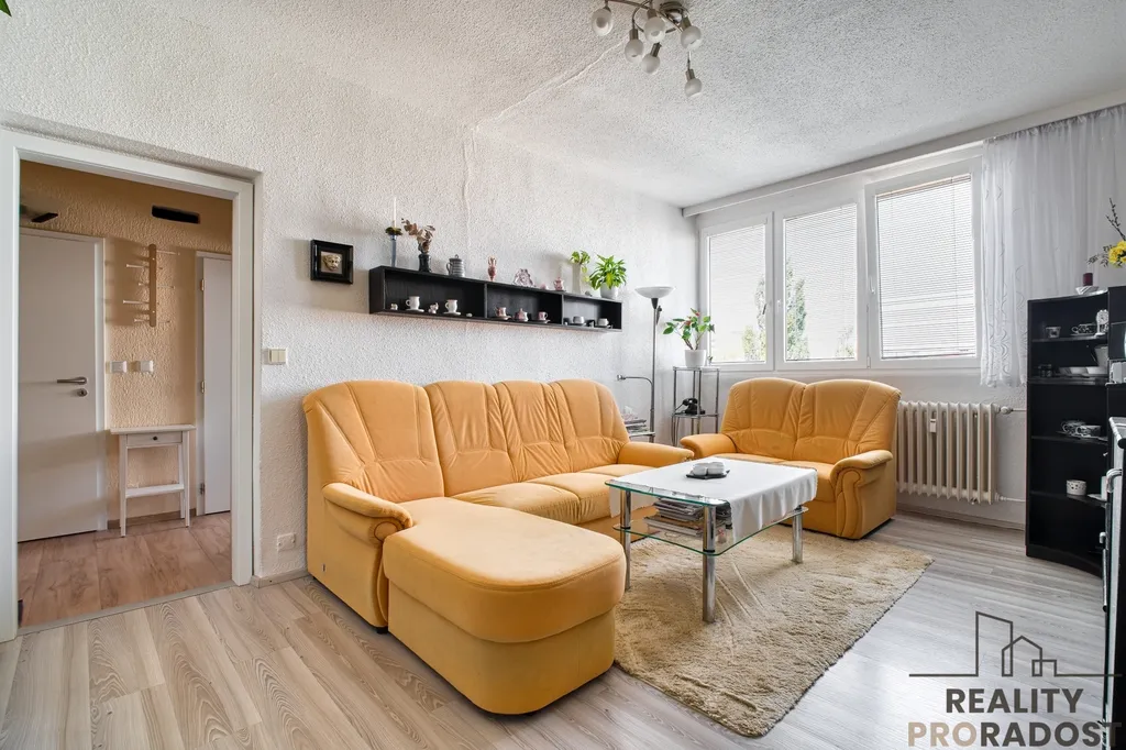 Technický stav bytu - byt procházel před cca 7-10 lety částečnou rekonstrukcí - nová elektřina v kuchyni a předsíni, nová kuchyňská linka včetně spotřebičů, laminátové podlahy, interiérové dveře včetně prosklených dveří mezi předsíní a obývacím pokojem, ... Nábytek není součástí prodeje.
