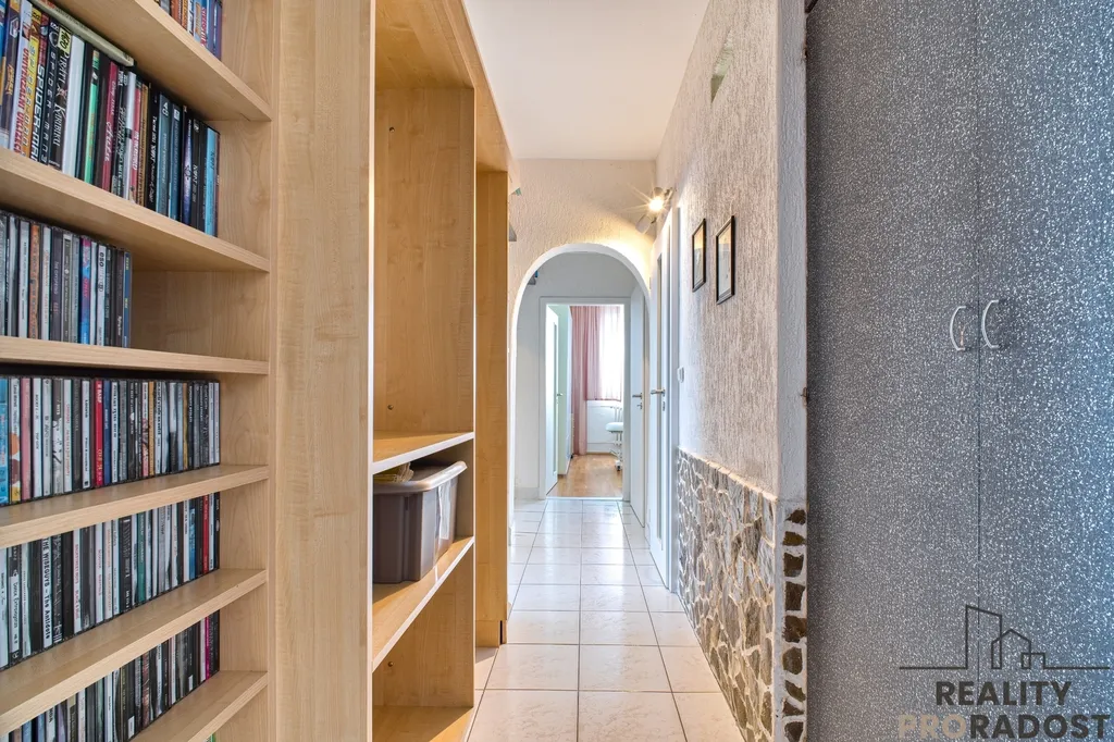 Výhodou bytu je jeho variabilita a množství úložného prostoru. Úložný prostor je hned u vstupních dveří v podobě šatny, tak také u koupelny jako samostatná spíž a dále množství úložného prostoru na chodbě.
