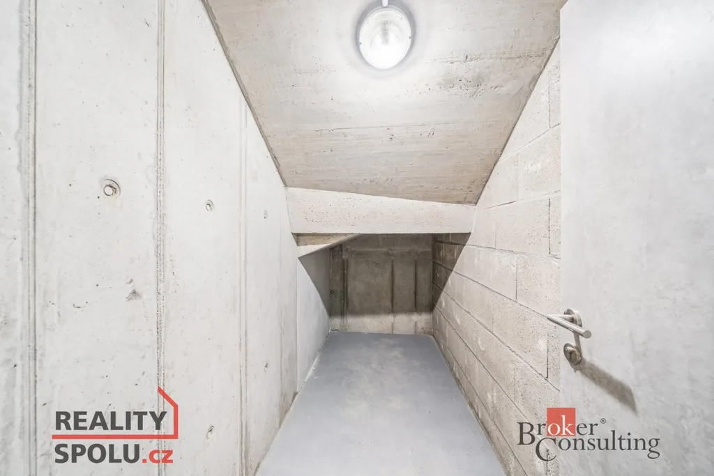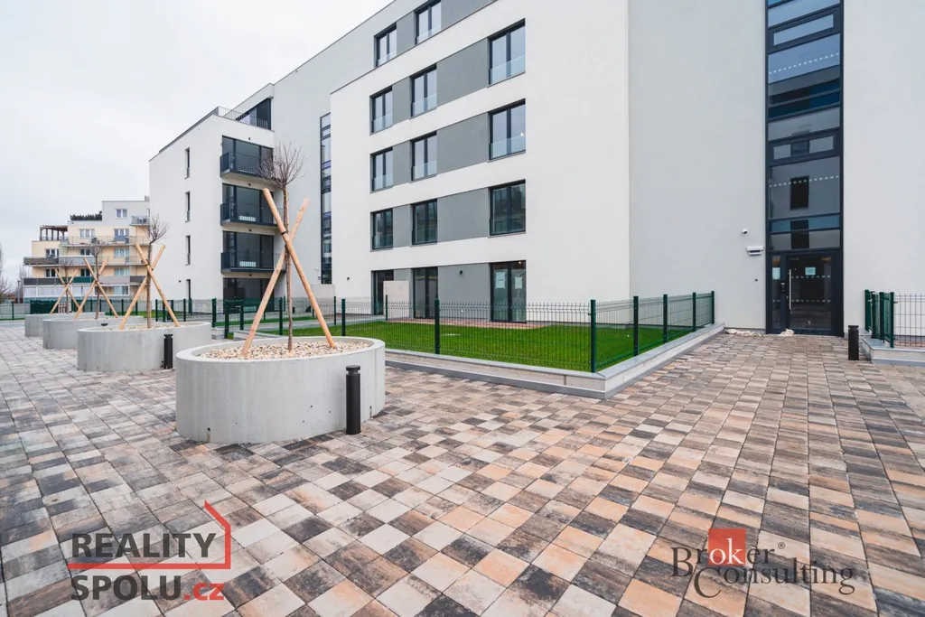 Byt se nachází v 1. patře. Kuchyňská linka s moderními spotřebiči je propojena s obývacím pokojem. K dispozici je koupelna se sprchovým koutem a WC. K bytu náleží lodžie o výměře sklep (2,5 m²), dále garážové stání.