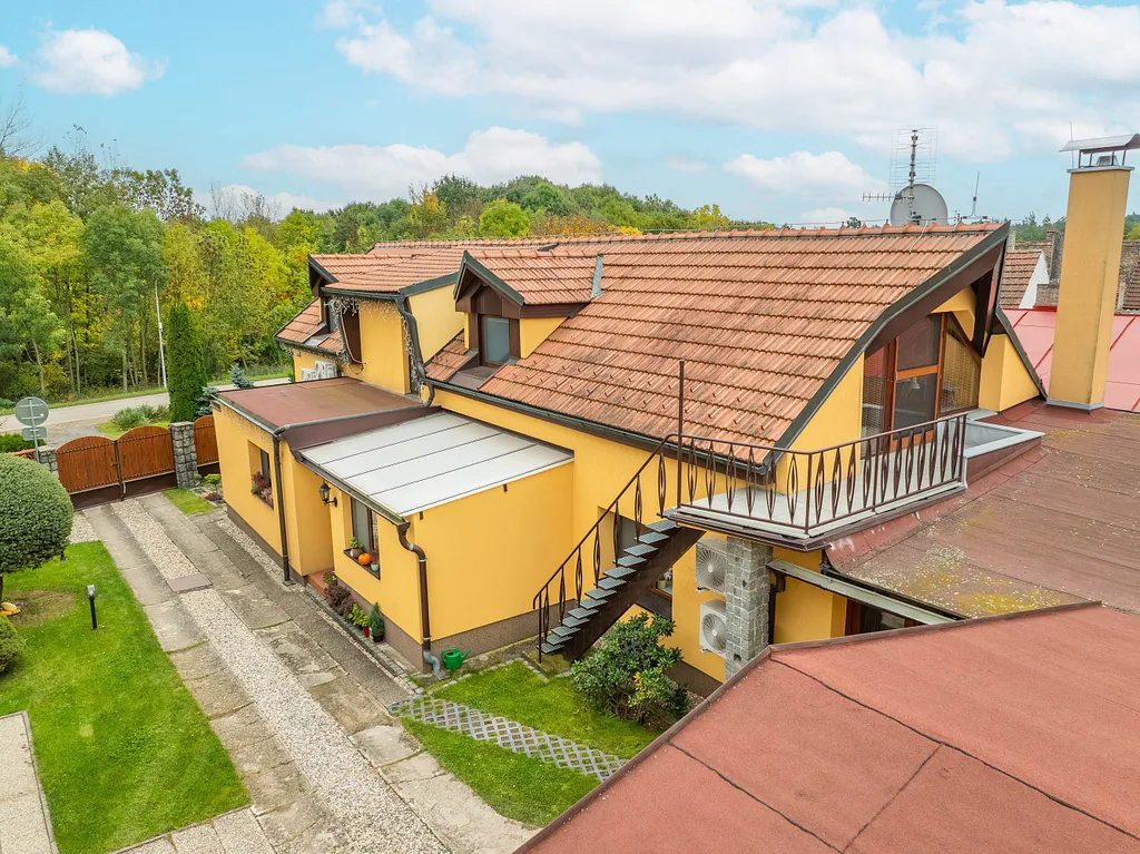 Nabízíme zprostředkování prodeje patrového rodinného domu v klidné části obce Hradištko, s dispozicí 7+1 + garáž, stojícího na pozemku o rozloze 1140 m². Tento cihlový dům byl zkolaudován v roce 2006 a je ve velmi dobrém stavu. Užitná plocha domu činí 241 m² + garáž pro 2 auta 36m² + pergola. Dále je zde praktický zahradní domek a nadzemní bazén vyhřívaný tepelným čerpadlem. Součástí domu je též malý sklípek o ploše 6 m² přístupný z předsíně.