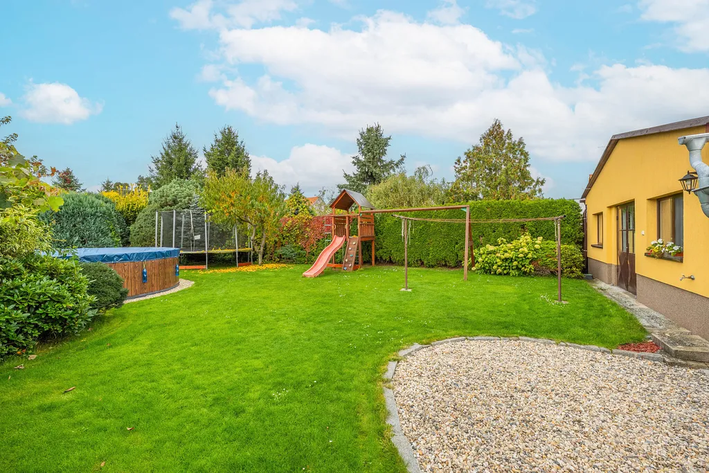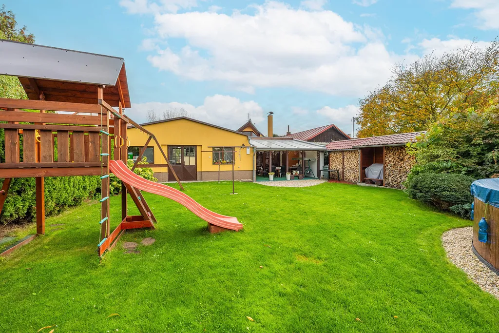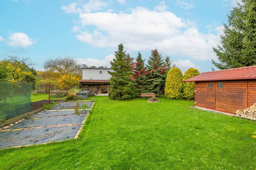 Ráda bych vyzdvihla prostornou zahradu za domem o výměře 655 m², která je ideální pro děti, relaxaci i společenské aktivity. Příjemným bonusem je automatická sekačka, která vám zjednoduší její údržbu.
