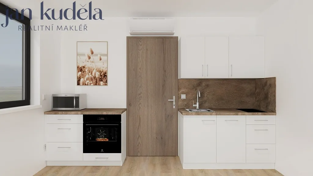 Při vstupu do bytu se nacházíte v předsíni a bude vybavena vestavěnou skříní přes celou šířku chodby, která poskytuje nadstandardní úložný prostor. Z předsíně je vstup do koupelny se sprchovým koutem, toaletou a místem pro pračku. Hlavní obytný prostor je propojen s kuchyňským koutem, který bude vybavenen vestavěnou myčkou, troubou, indukční varnou deskou, Z pokoje je vstup na balkon orientovaný do klidné části okolí.