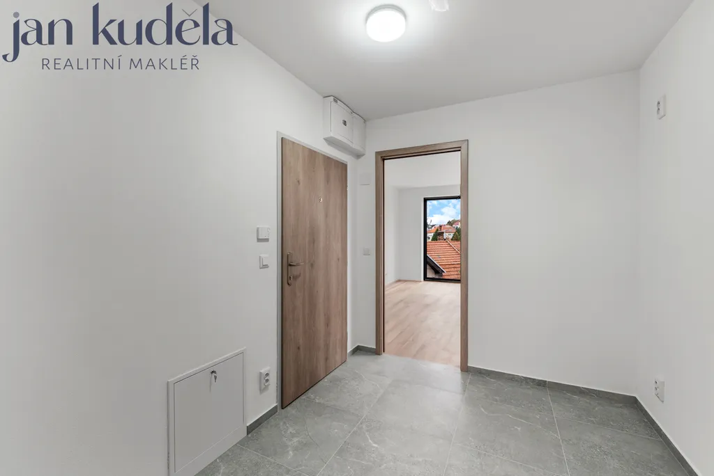K pronájmu nabízíme zcela nový a dosud neužívaný byt o dispozici 1+kk o užitné ploše 29,5 m² s balkonem o velikosti 3,4m² a sklepní kójí 1,9m². Byt se nachází v 4. nadzemním podlaží právě zkolaudovaného domu s krásným výhledem na Brno na ulici Líšeňská. Jedná se o první pronájem. Dům není vybaven výtahem.