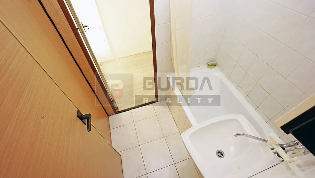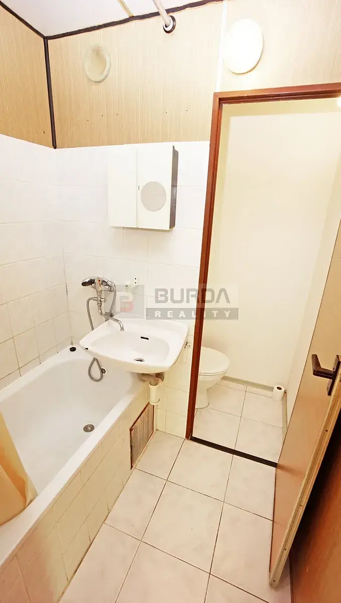 Bytové jádro je původní s vanou 120 cm a umyvadlem. Na WC a v koupelně je dlažba.