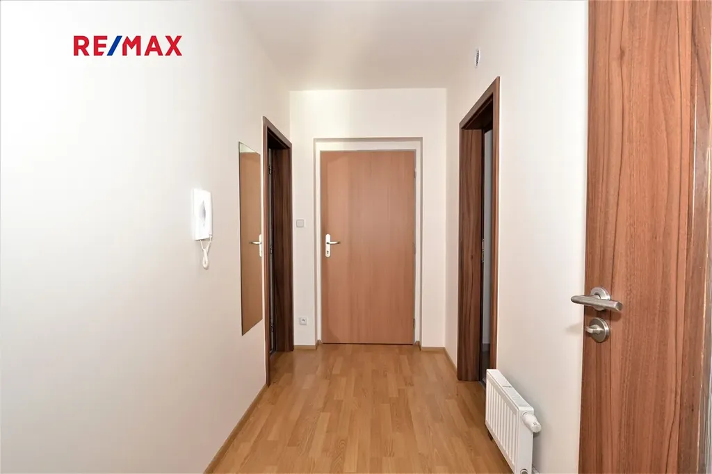 Kuchyňský kout je vybaven moderní kuchyňskou linkou se sklokeramickou varnou deskou, multifunkční el. troubou, myčkou nádobí a lednicí s mrazákem. Pokoj s kuchyňským koutem je průchozí do druhého pokoje. Z obou pokojů je samostatný vstup na terasu. Koupelna je s vanou a toaletou. Úložné prostory nabízí šatna. V ceně nájmu je garážové stání a lze využívat sklep (2 m2). V domě je výtah a je zajištěn úklid společných prostor. Vytápění bytu a ohřev vody zajišťuje vlastní plynový kotel.