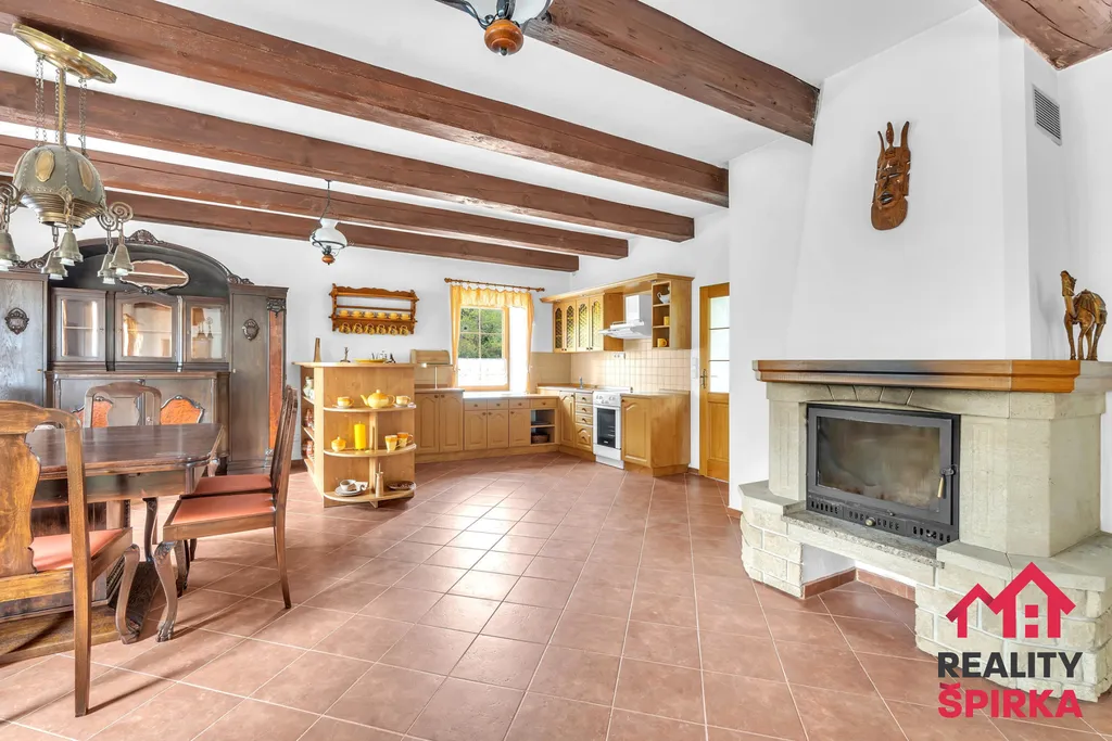 Jednotka 2+kk nabídne velkou stylovou místnost se stylovými krovy, kuchyň spojenou s obývákem, krb s teplovzdušnými průduchy, pokoj, spižírnu, koupelnu, WC. Vše doladěné starožitnými prvky.